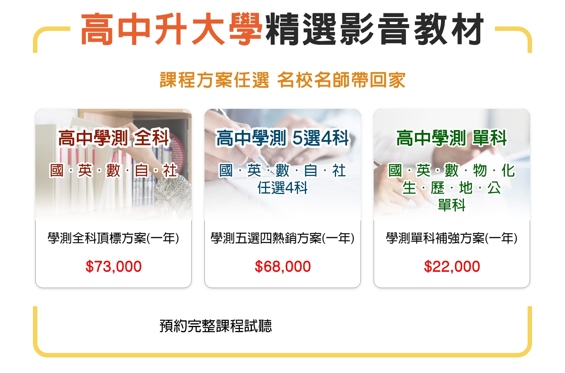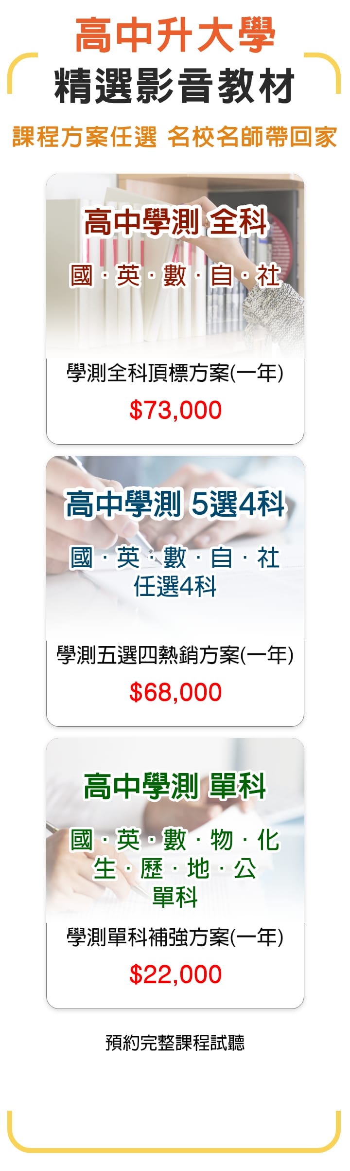 上了高中我認為像國中一樣自己讀就可以了,但我漸漸發現學校教的課程進度遠遠不夠,即使我很努力的讀也很難將進度追回來,因此我開始上線上課程。數學很詳細的介紹基礎,也有各種不同題型的練習,老師會用有趣的口訣來幫助我們記住公式。我很高興有上線上課程,讓我多了一點的可能性,也很感謝即使到最後都沒有放棄的自己。
