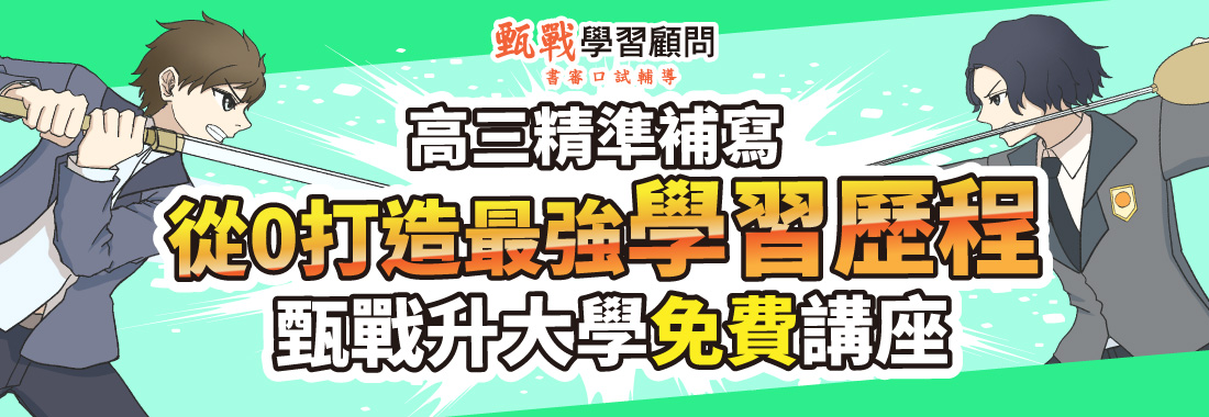 108課綱上路學習歷程變得至關重要,還不知道該如何下手嗎?甄戰學習歷程輔導課,一對一客製化小班課,從定向到完成歷程精修,顧問師和同領域碩博級老師,帶你做出符合目標校系的學習歷程檔案,順利上榜夢想校系。
